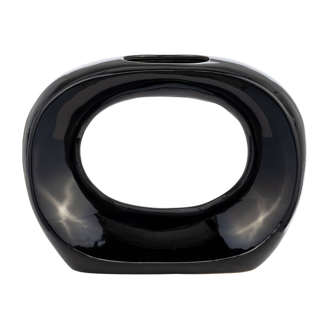 CER, 11"H OVAL VASE, SHINY BLACK