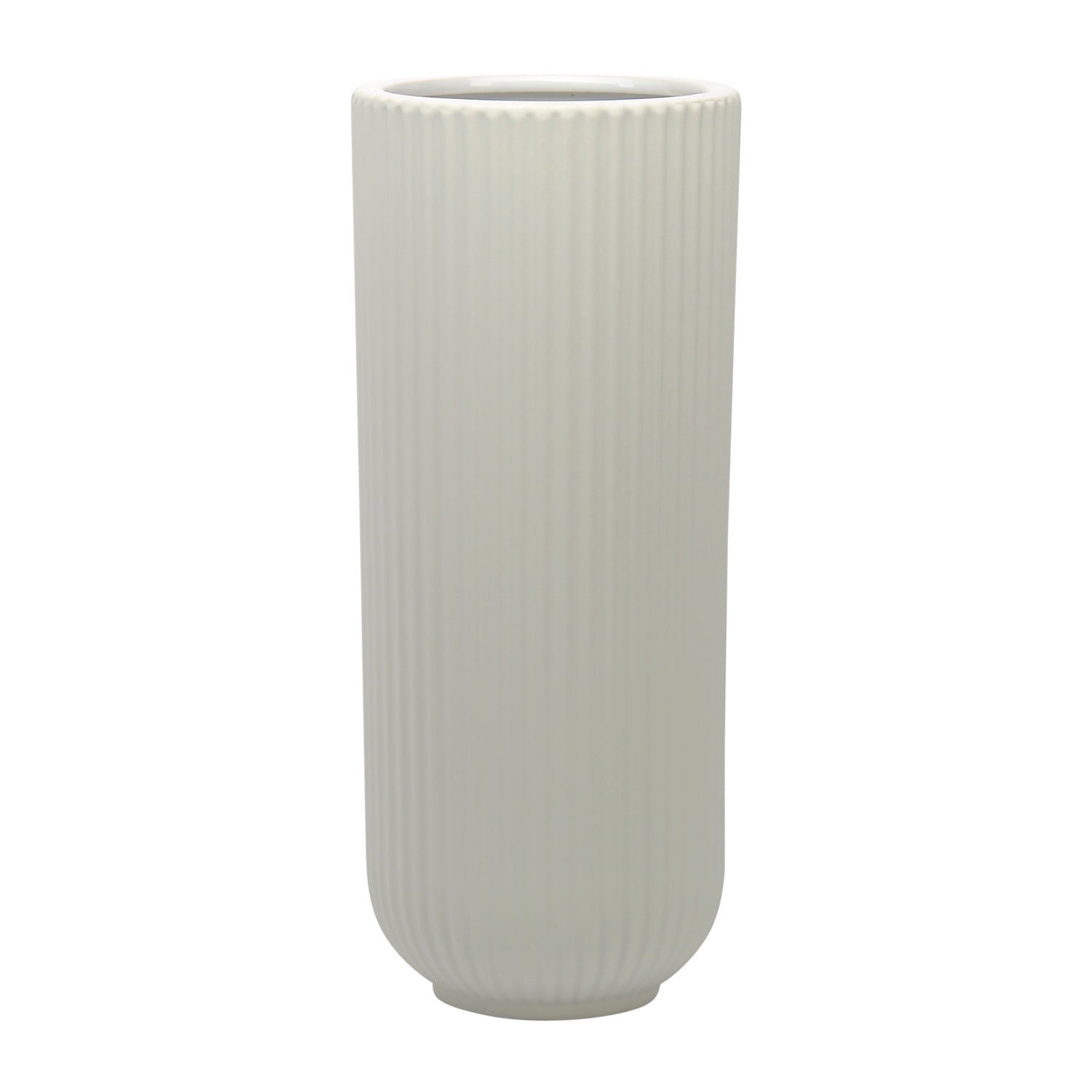 CER, 11"H RIDGED VASE, WHITE