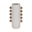 Cer, 13" Vase W/ Side Knobs, White/Gold