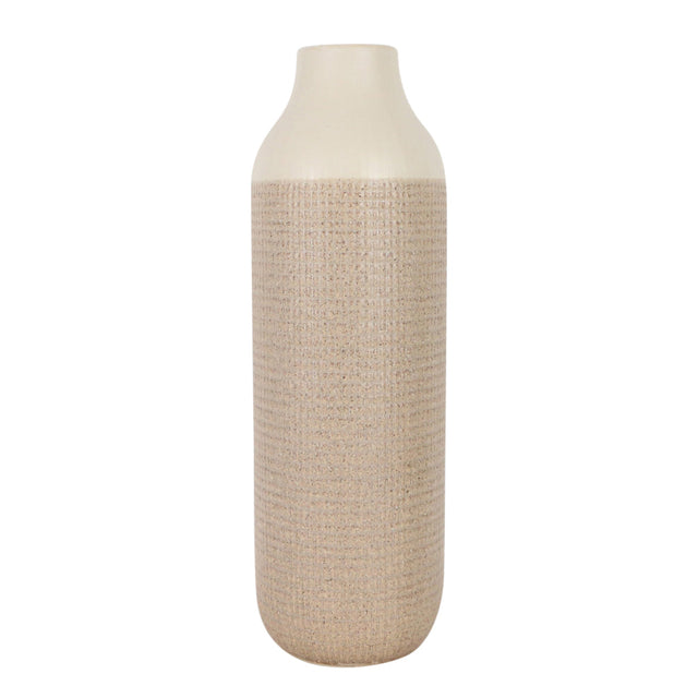 CER, 16" 2-TONE VASE, WHITE/TAN