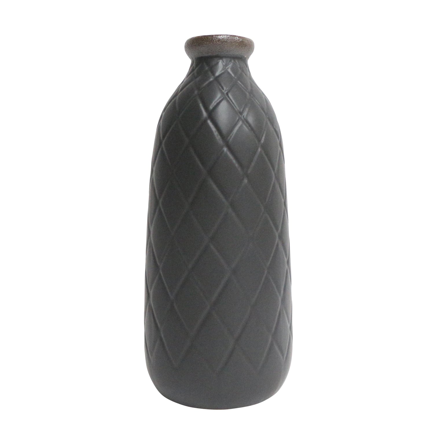 Cer, 16" Plaid Textured Vase, Black
