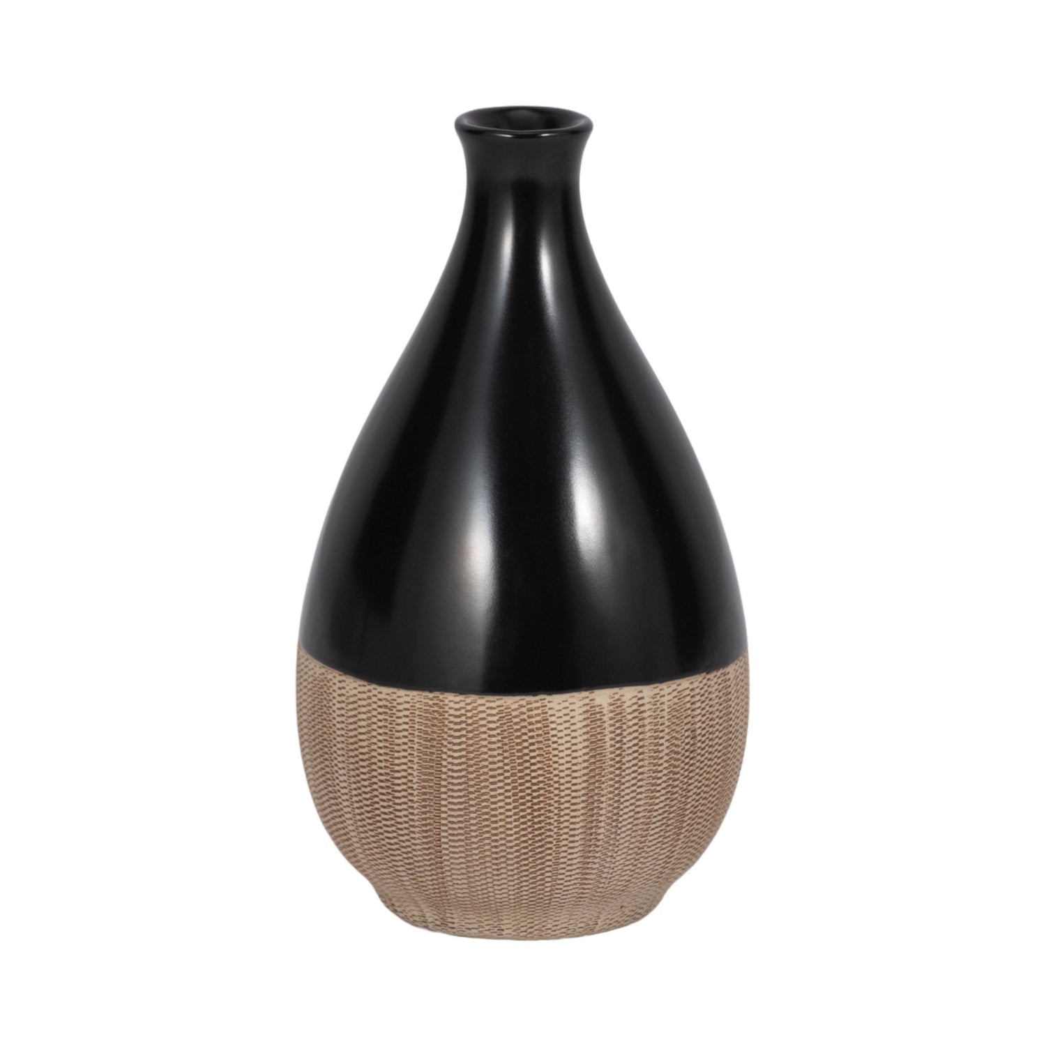 CER, 7"H 2-TONE TEARDROP VASE, CREME/BLK