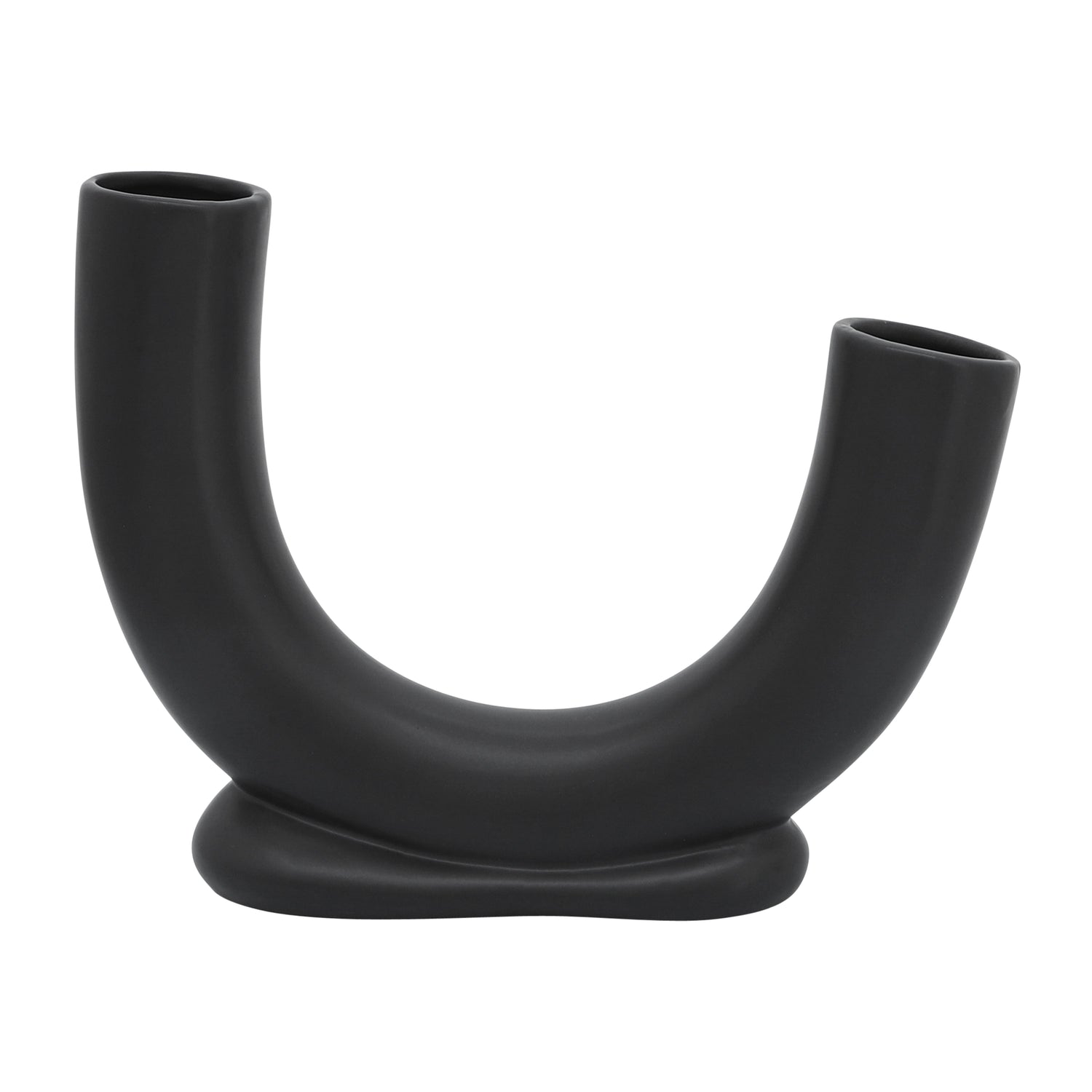 Cer, 8"H U-Shaped Vase W/ Base, Black