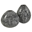 Set of two, ceramic vases embrace a timeless and sophisticated combination of black and white. This duo represents elegance and versatility that never goes out of style. Sizes: S-9x8x9, L-8x10x8
