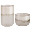 The Frost Vases Complement Virtually Any Style. Handcrafted From Etched Glass, Each Vase Is Finished With A Metallic Silver Drip Design And Can Easily Hold Floral Stems, Candles, Fruit, Or Stand Alone. Sizes: S-6x4x6, L-6x9x6