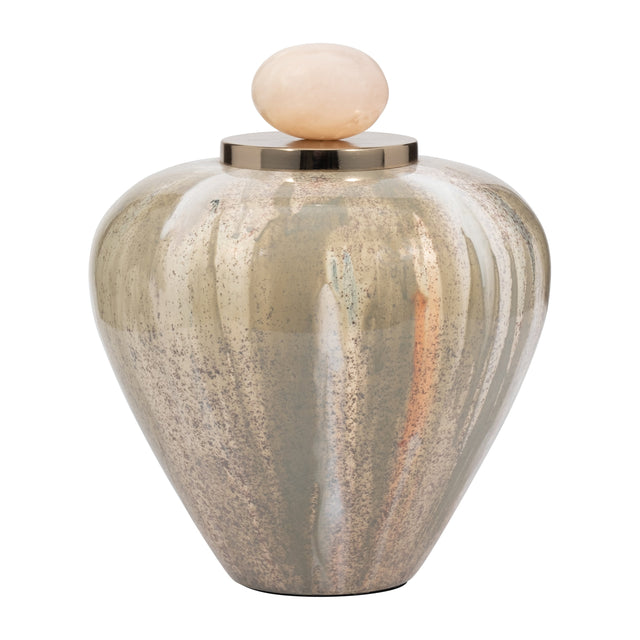 GLASS, 10" TEMPLE VASE W/ RESIN TOPPER, BLUSH/GREE