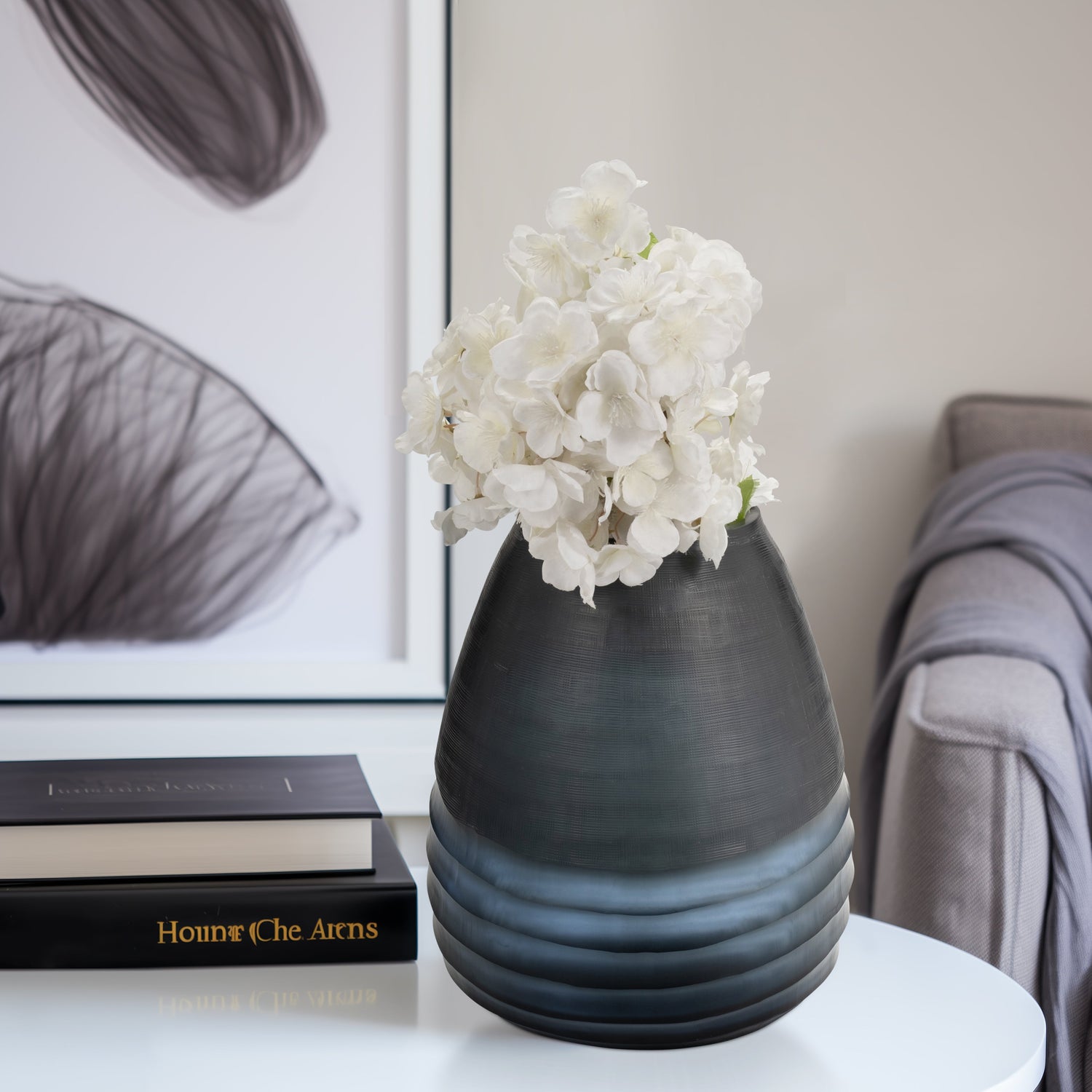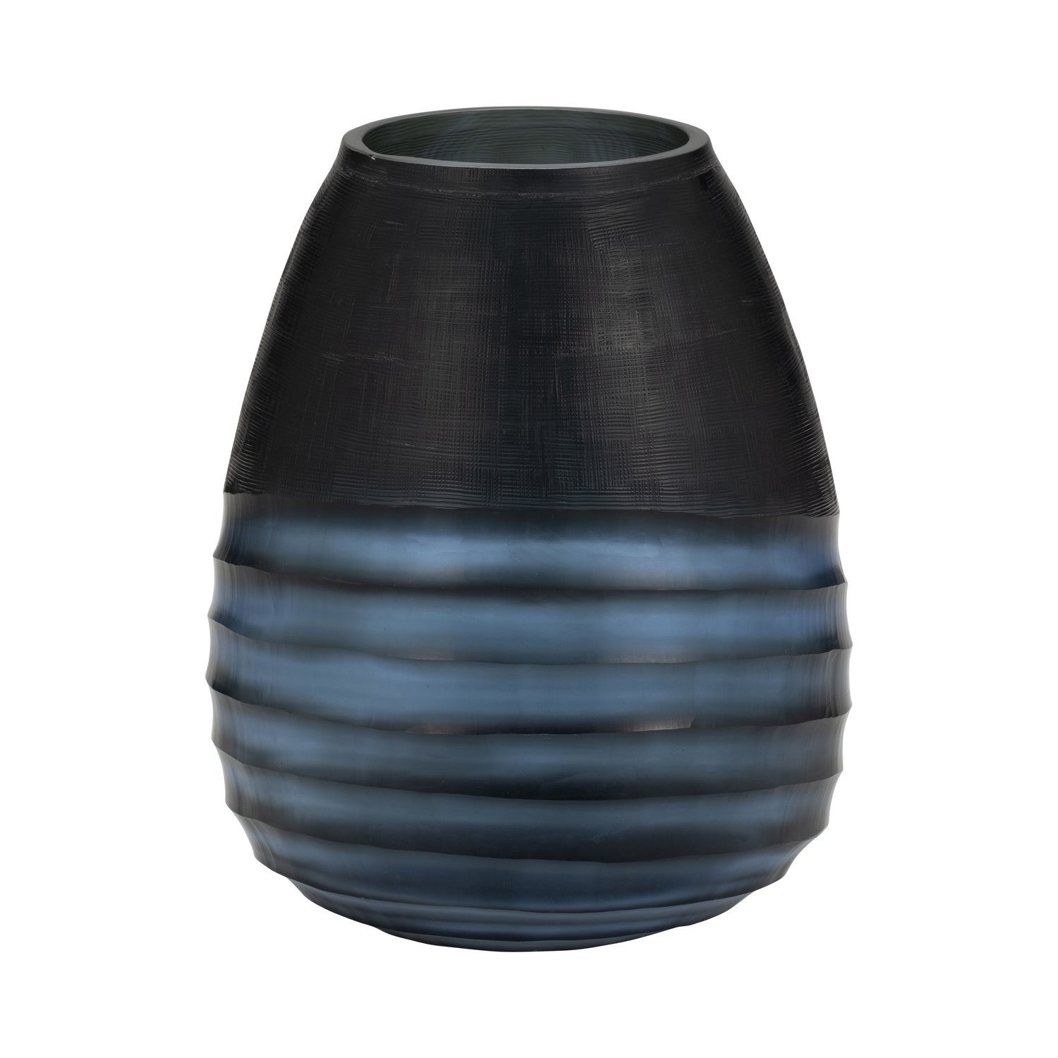 Glass, 11" Etched Vase, Blue