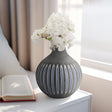 Glass, 12" Ridged Vase, Blue/Gray