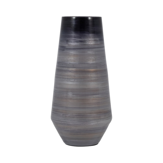 GLASS, 15" ENAMELED VASE, GRAY/BLACK