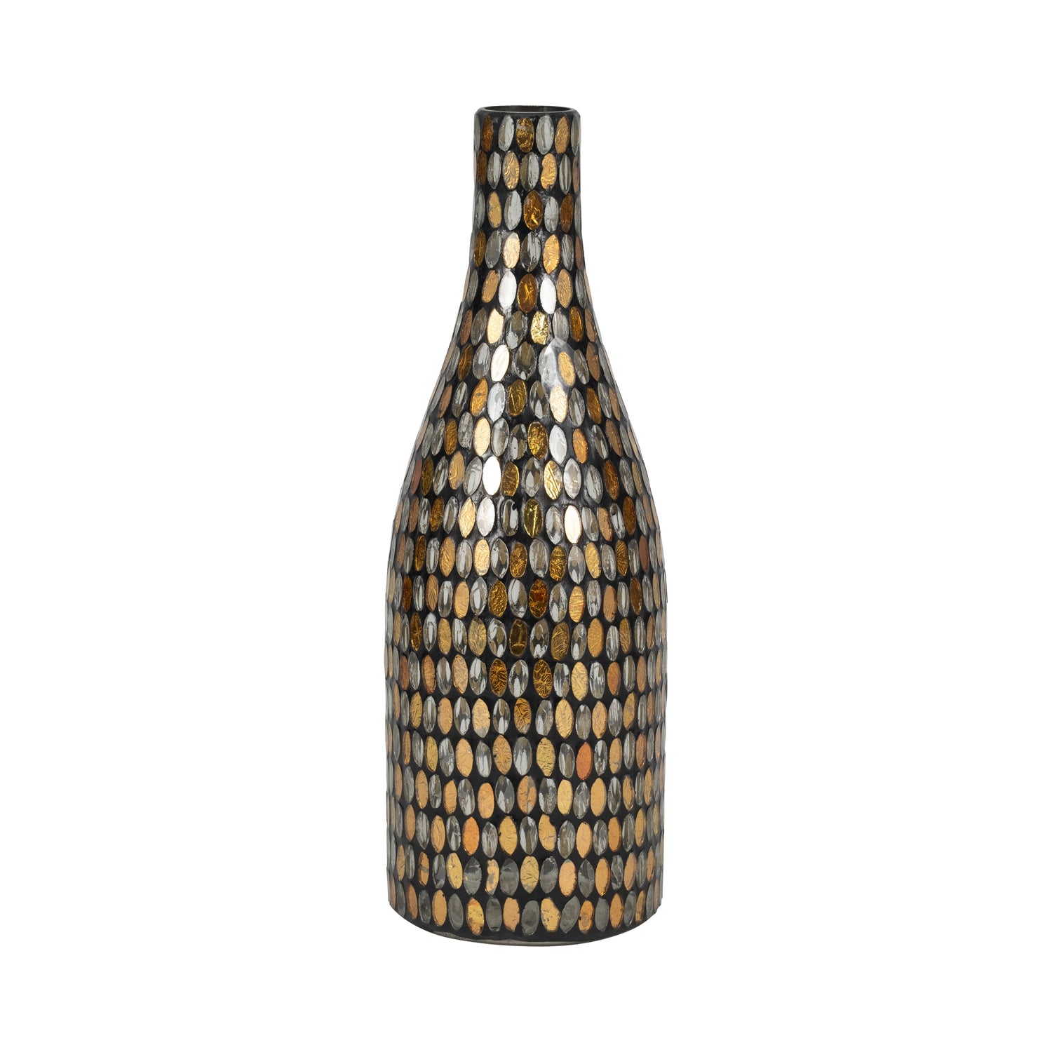 GLASS, 15"H MOSAIC VASE, COPPER