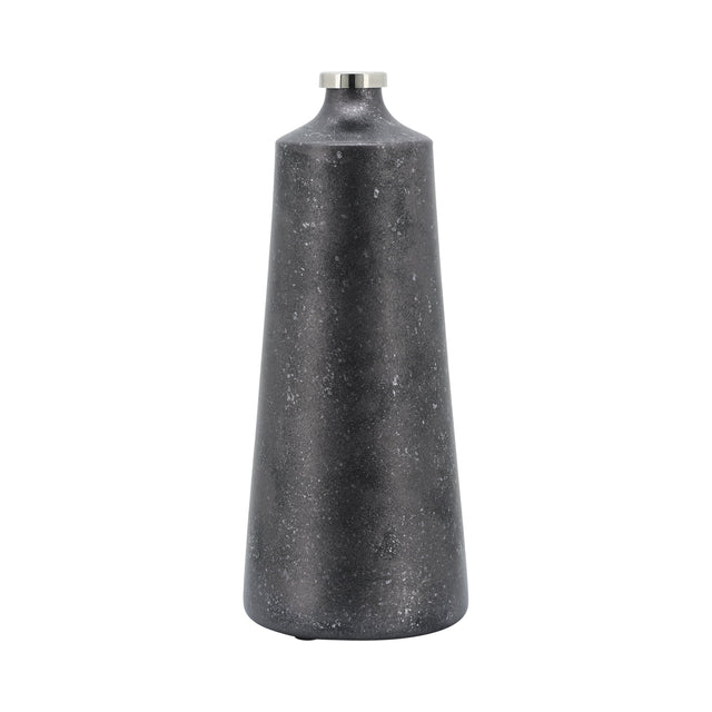 GLASS, 18"H VASE W/ RING, BLACK