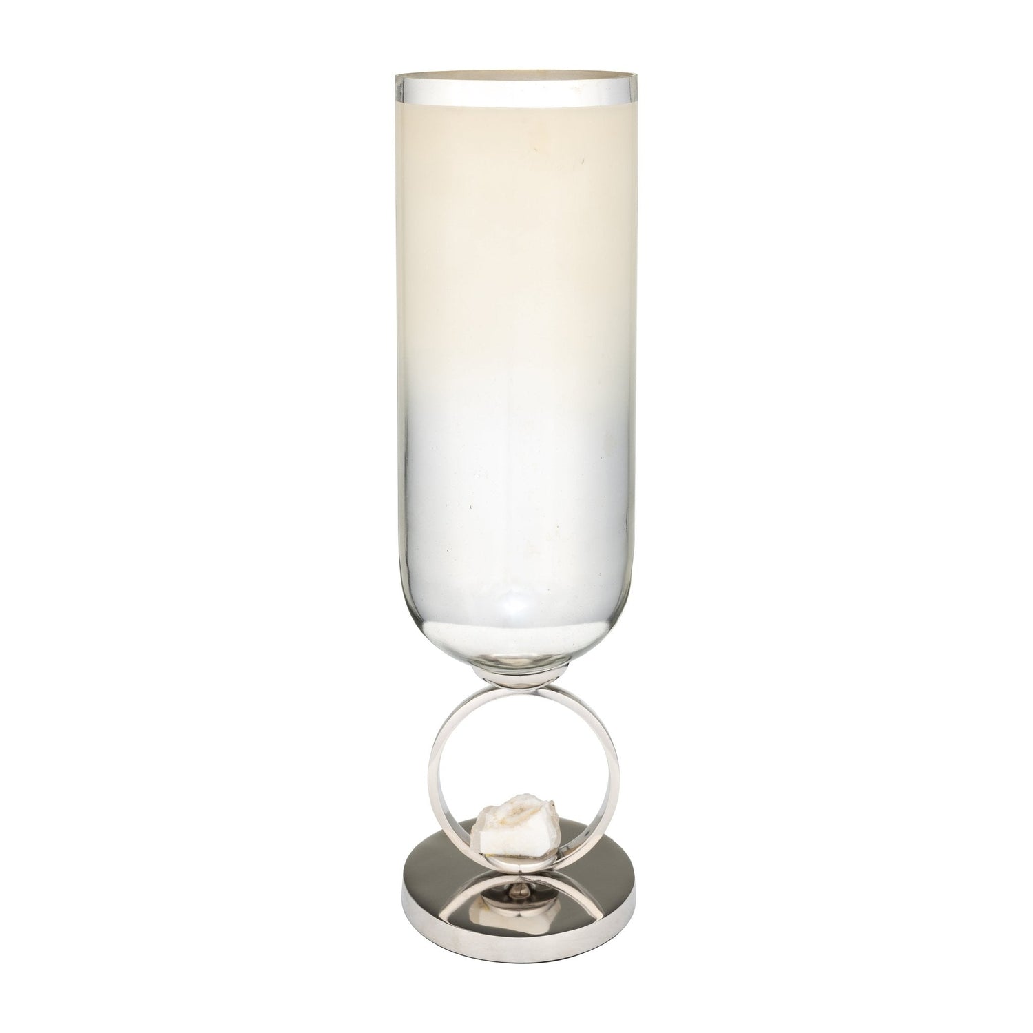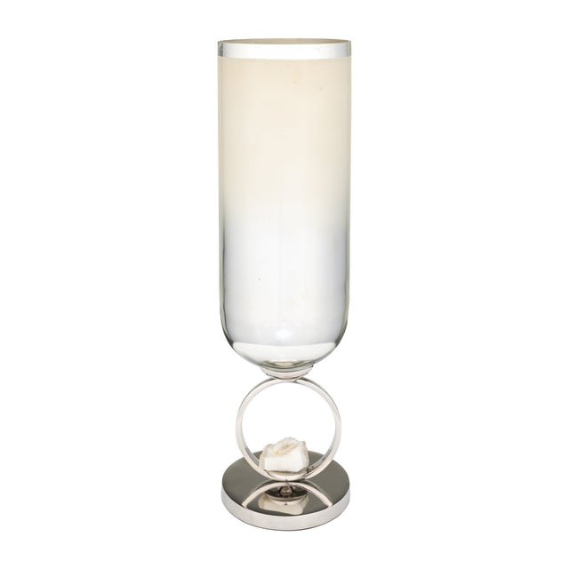 GLASS, 21" VASE W/ METAL BASE STONE ACCENT, PEARL