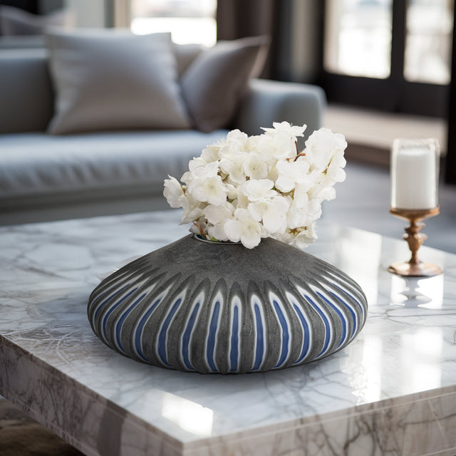 زجاج، مزهرية مضلعة مقاس 7 بوصات، أزرق/رمادي