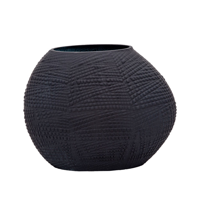 GLASS 8"H TEXTURED VASE, BLACK
