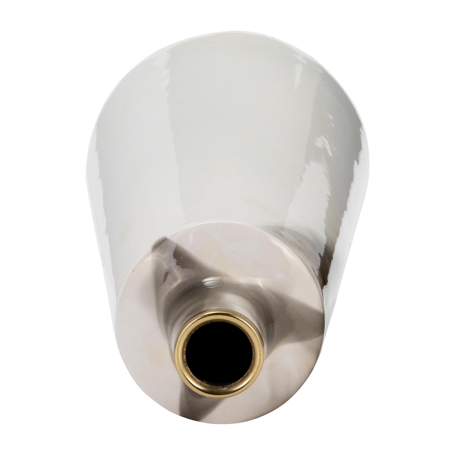 Metal, 15"H Vase With Ring Lid, White/Gold