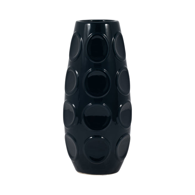 STONEWARE, 13" CIRCLE EMBOSSED VASE, NAVY