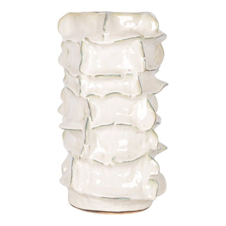 17" Stacked Triangle Rough Vase,ivory