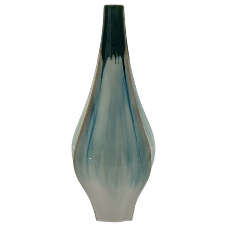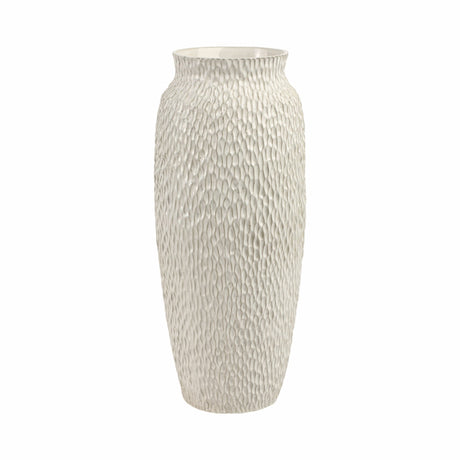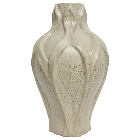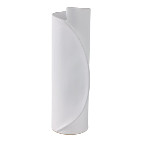 19" ASYMMETRICAL EARED TERRACOTTA BTL VASE, WHITE