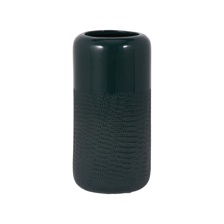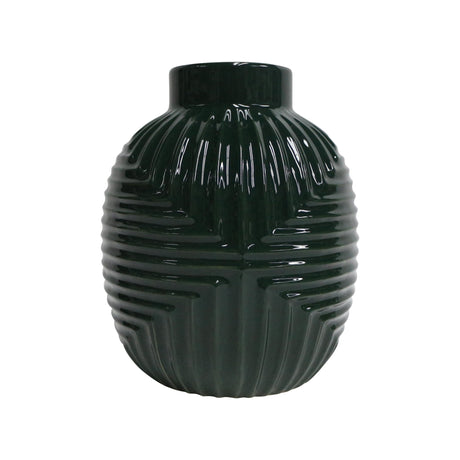 CER, 10"H GROOVED VASE, FOREST GREEN