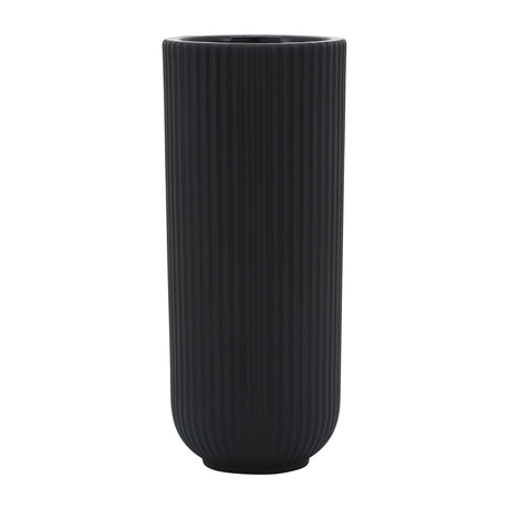 CER, 11"H RIDGED VASE, BLACK
