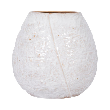 CER 8" TEXTURED WIDE CUT-OUT VASE, COTTON
