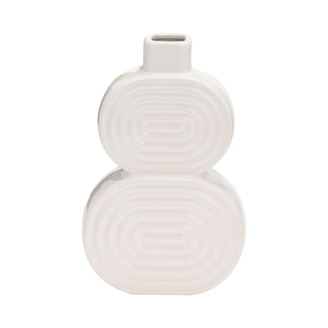 CER, 10" STACKED CIRCLES VASE, WHITE