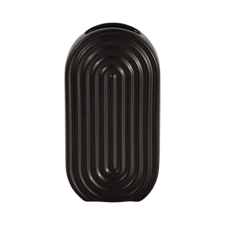 CER, 11" OVAL RIDGED VASE, BLACK