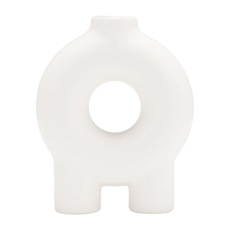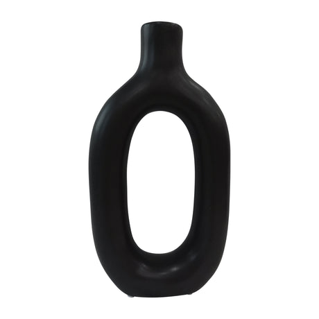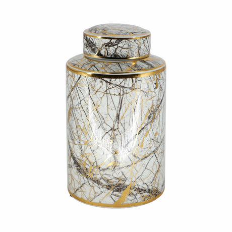 CERAMIC 15"H VASE W/ GOLD LID, WHITE/BLACK