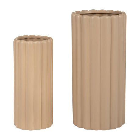 CER, S/2 10/13”H RIBBED VASES, IRISH CREAM