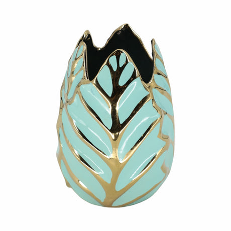 CERAMIC 23.5" NARROW NECK VASE, GOLD/BLUE