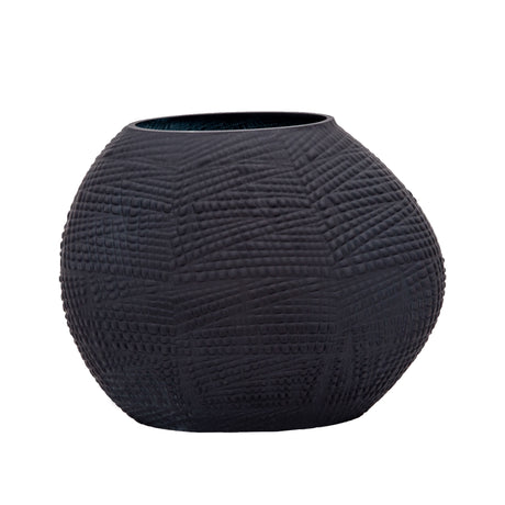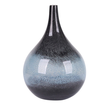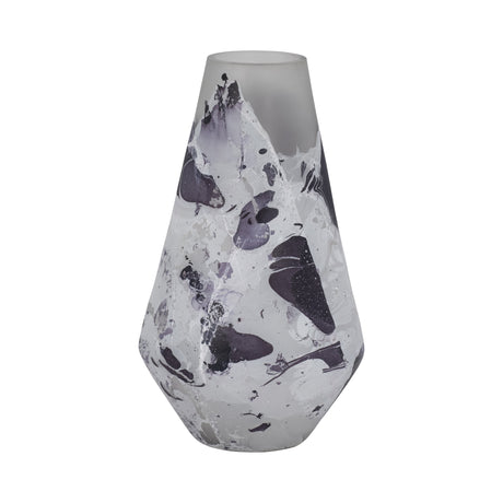 GLASS, 10''H, FROSTED VASE WITH RED DETAIL-GRAY
