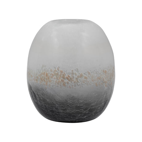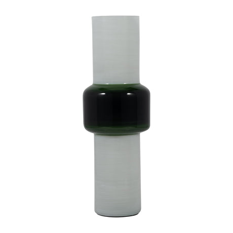 GLASS, 17''H, FROSTED VASE WITH RED DETAIL-GRAY
