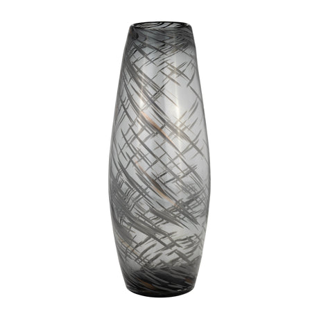GLASS, 21"H VASE W/ RING, WICKHOM GRAY