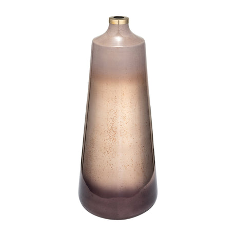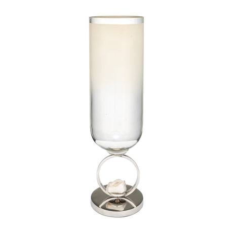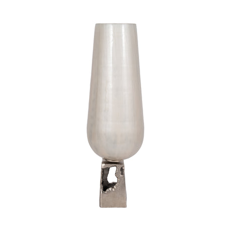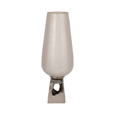 GLASS, 21" VASE W/ METAL BASE STONE ACCENT, PEARL