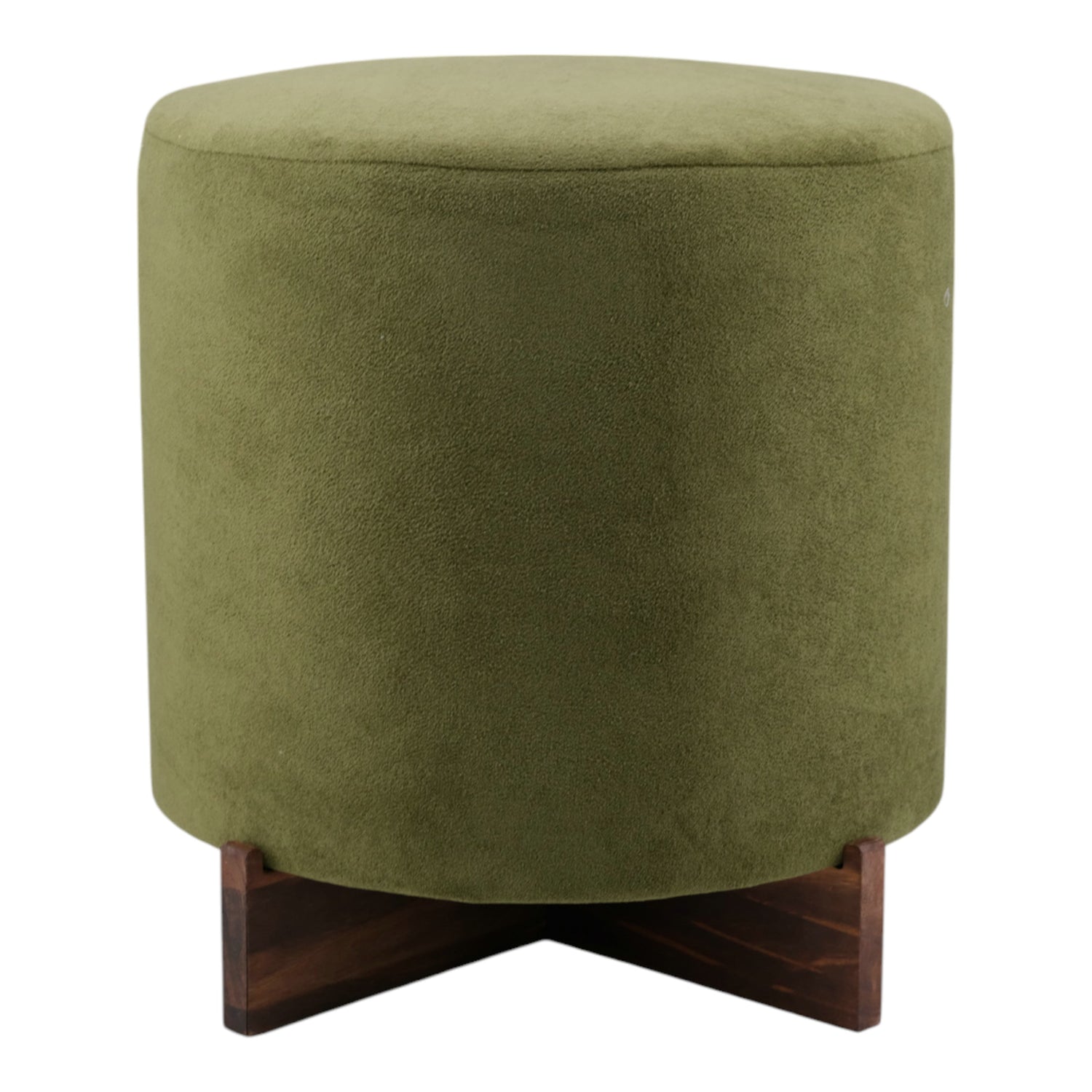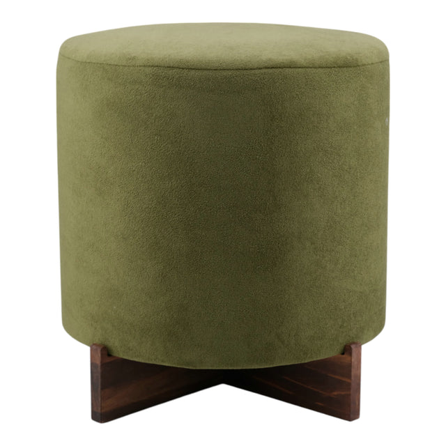 18" Modern Velvet Ottoman With Wood Base, Green