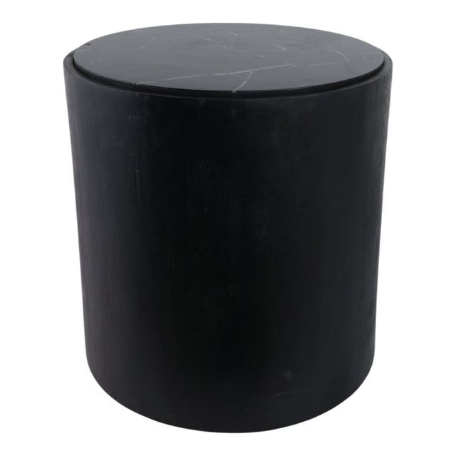 18x18 Marble Inlay Rnd Accent Table, Blk/wht