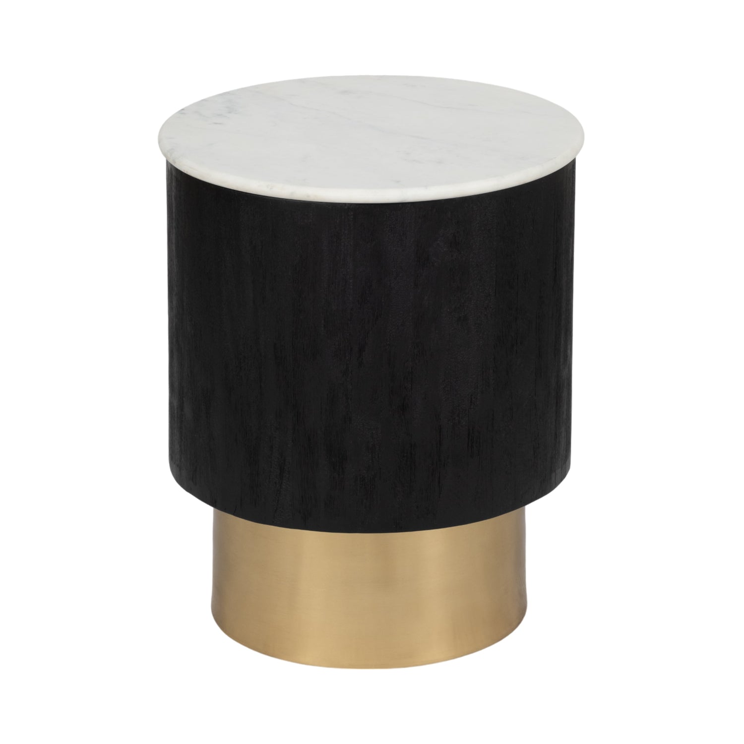 20" Gold Pedestal Accent Table Marble Top, Wht/Blk