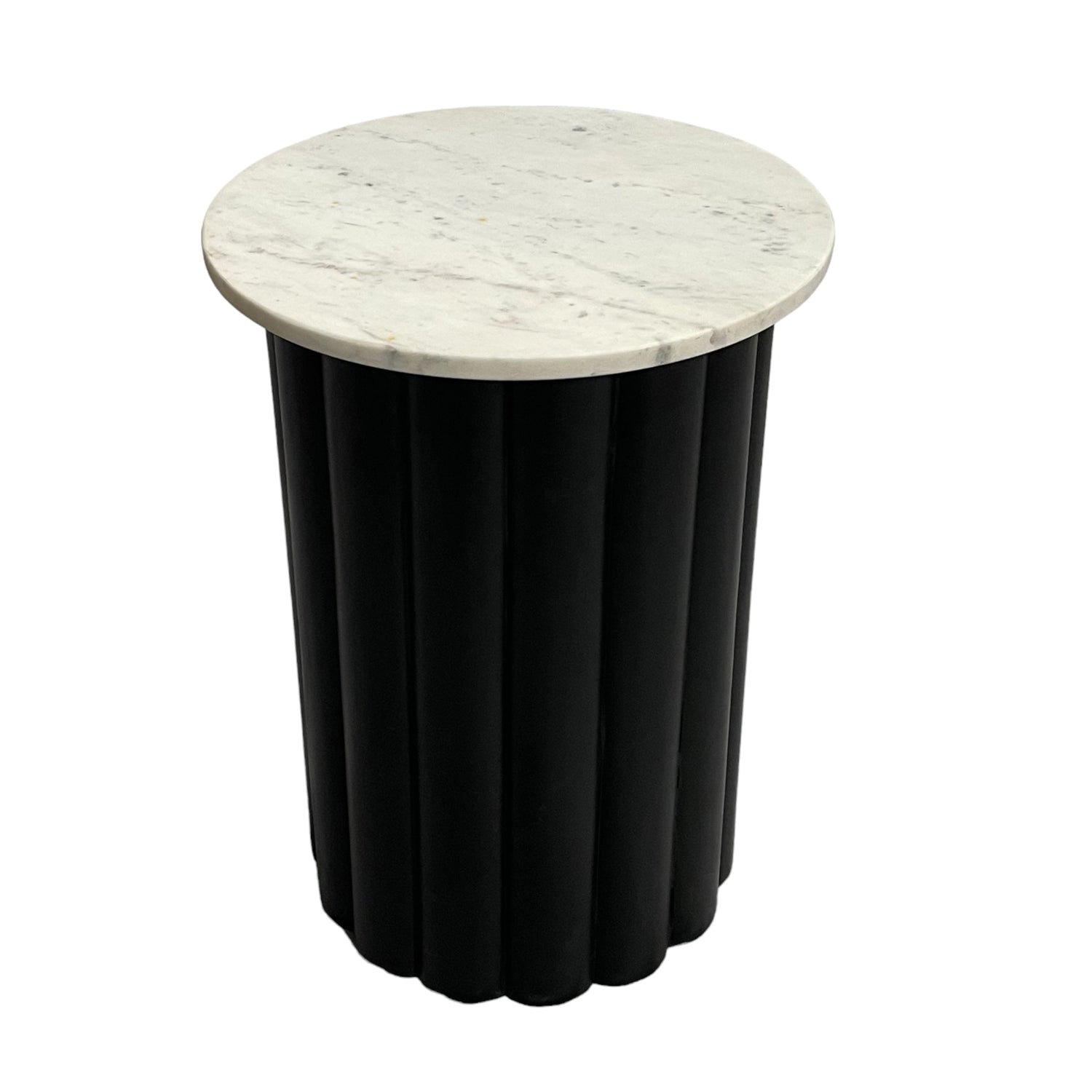 20" Large Ribbed Accent Table Marble Top, Blk/Grn
