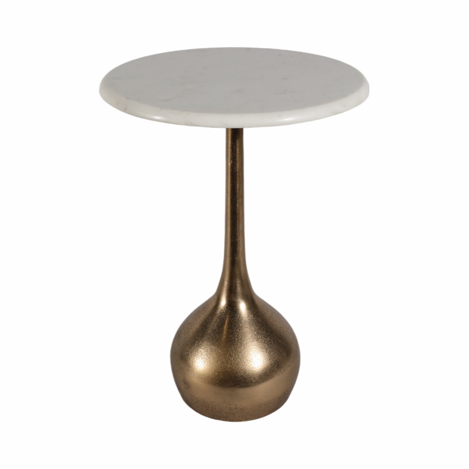 20" MARBLE ACCENT TABLE BALL BASE, WHT/ATQ BRASS