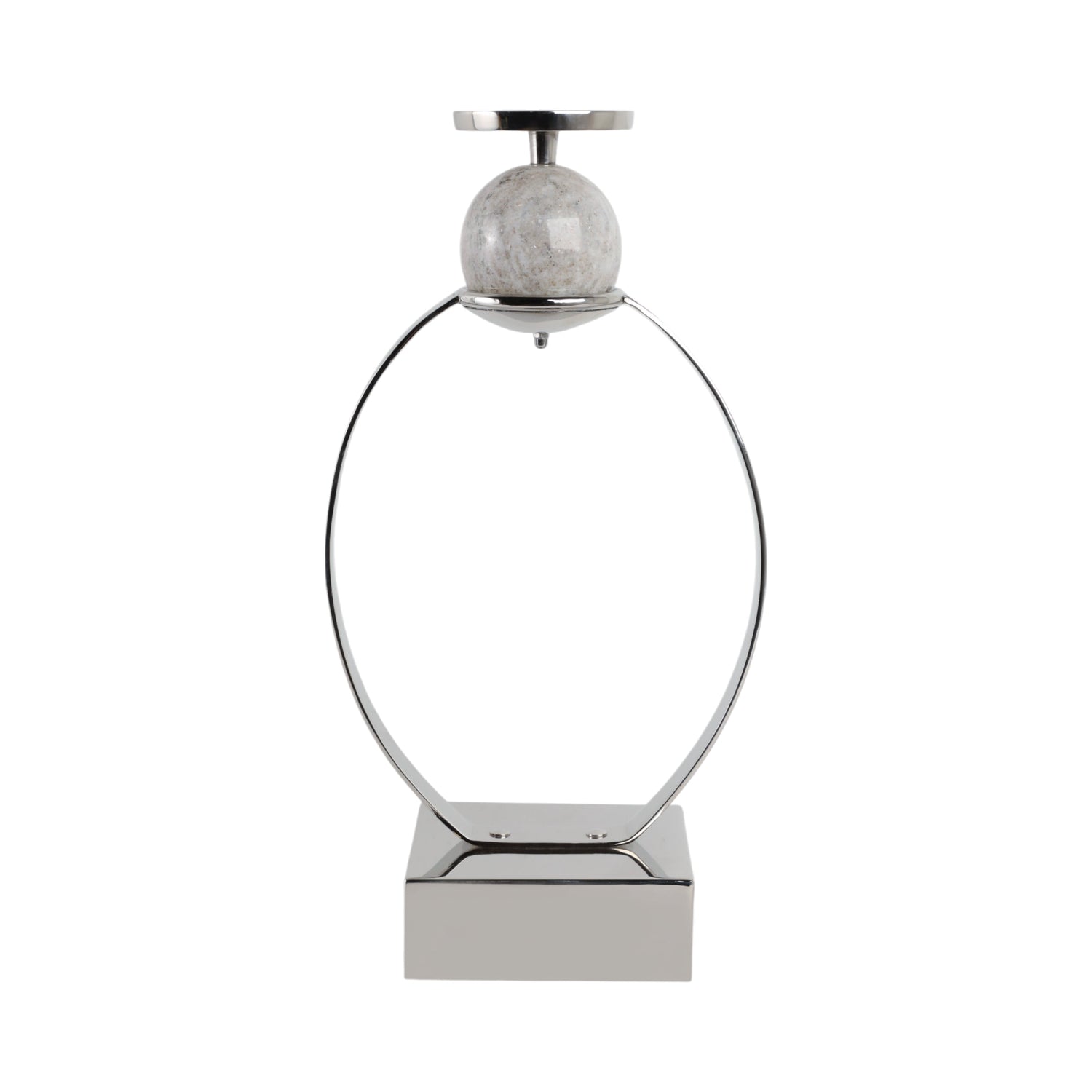 21"DURANT SMALL SLVR CANDLE HOLDER W/MARBLE SPHERE