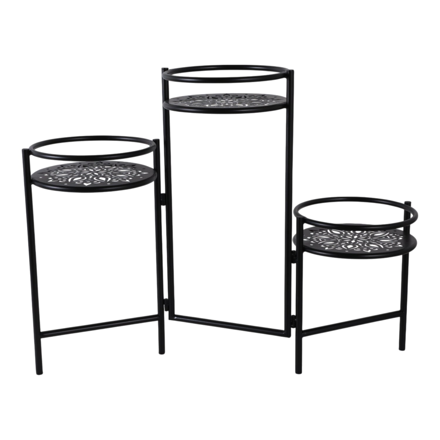 22" Folding 3-tier Mandala Plant Stand, Black