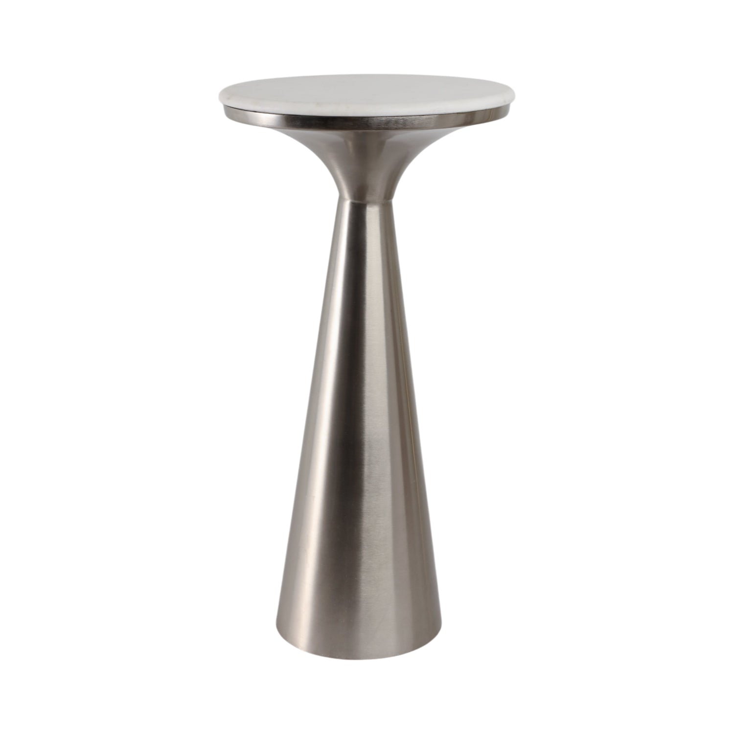 22x11"tapered Metal Base&mrble Drink Table,wht/slv