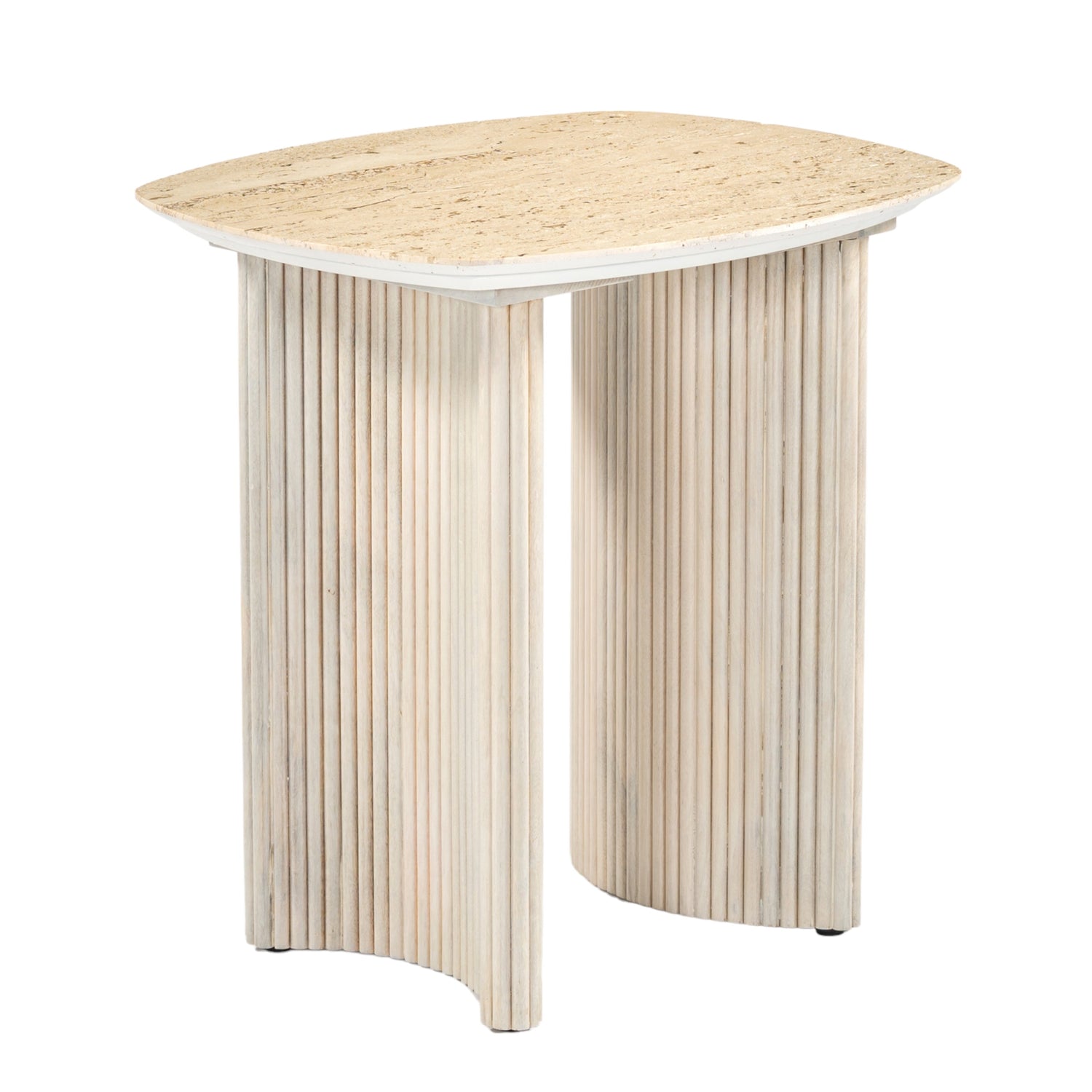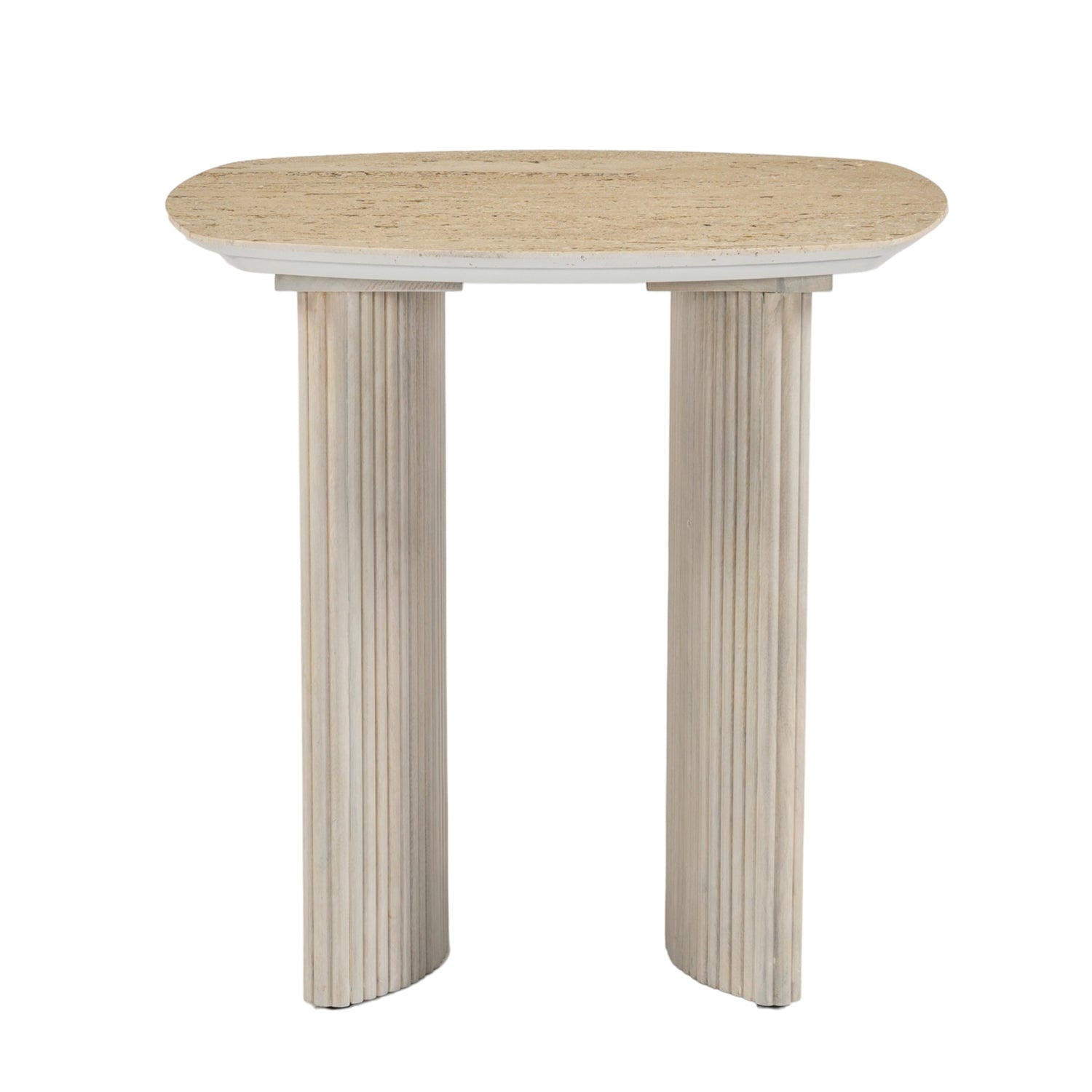 24"catalina Travertine&fluted Wood Accent Table/kd