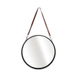 28" ROUND MIRROR W/ LEATHER STRAP, BLACK