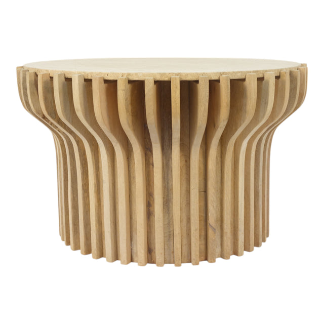 30" Grenoble Wood And Travertine Coffee Table, Whi
