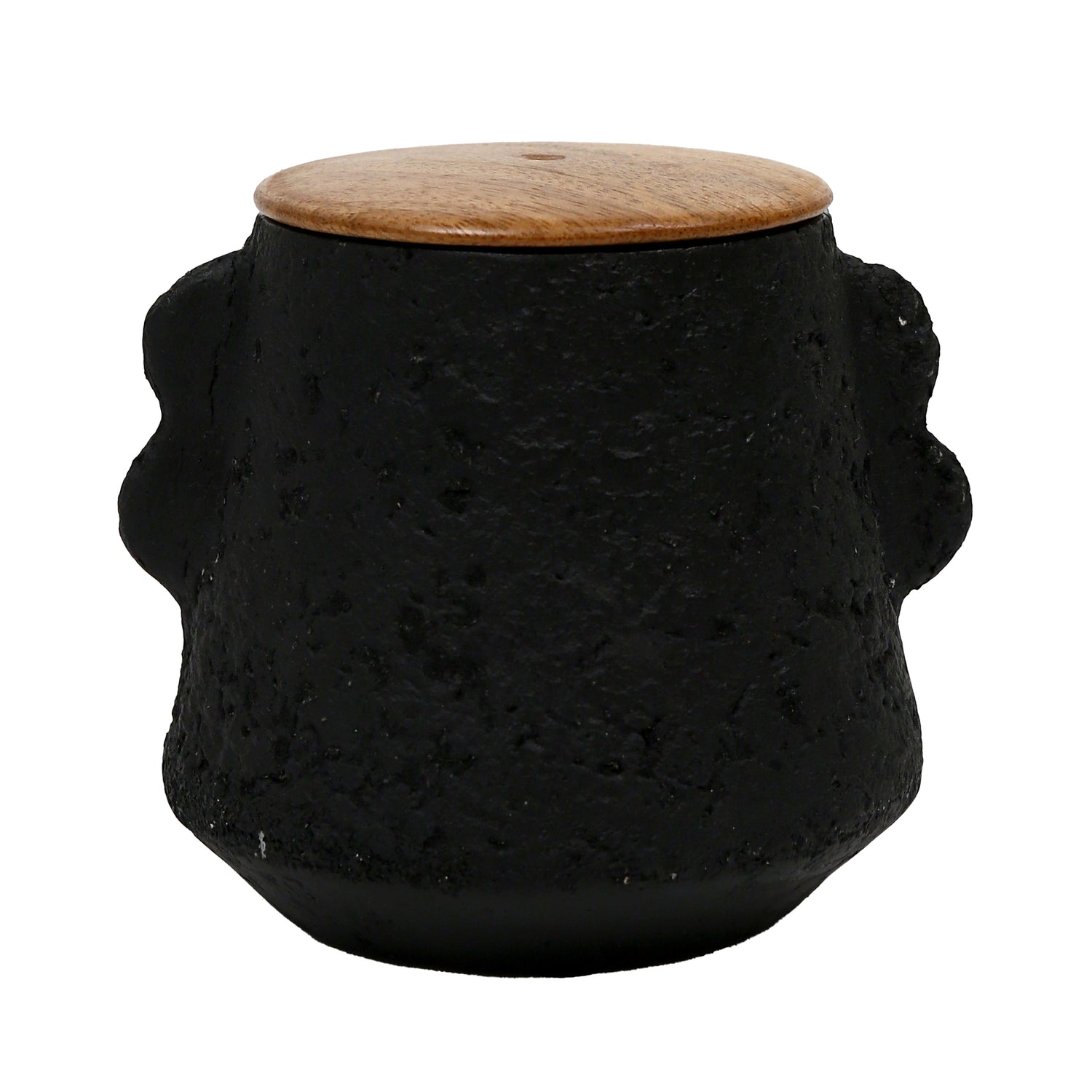 4" 8 Oz Balsam & Myrrh Eared Candle With Lid, Blk