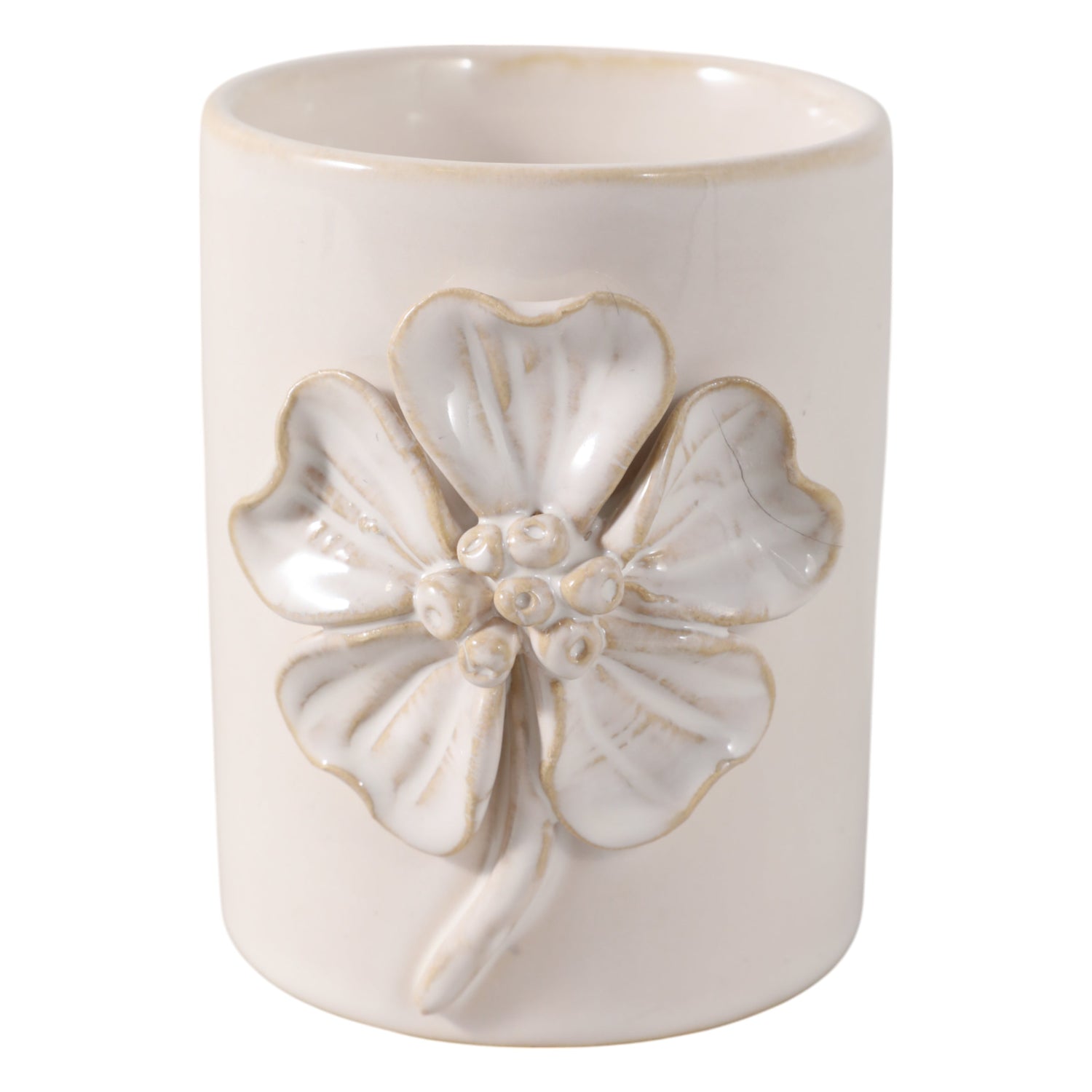 4" Flower Applique Pencil Cup, Ivory