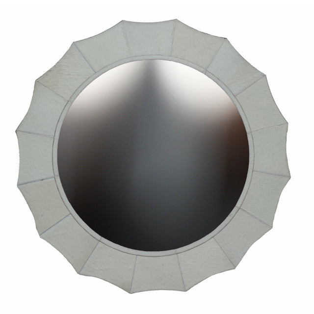 42x42" Inverted Scallop Hair On Hide Mirror, Ivory