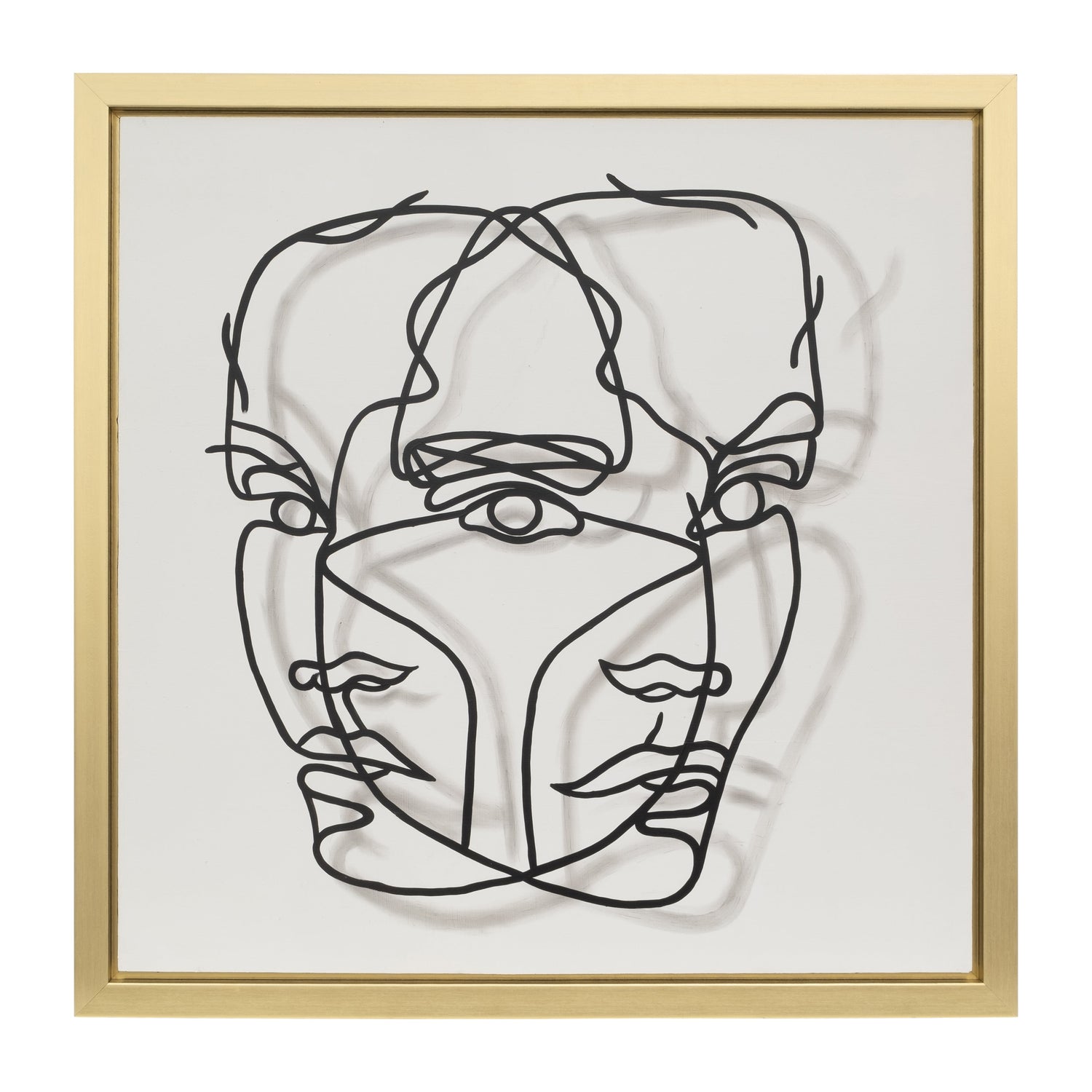 47X47,GOLD FRAME HAND PAINTED FACE ILLUSION,WHT/BL