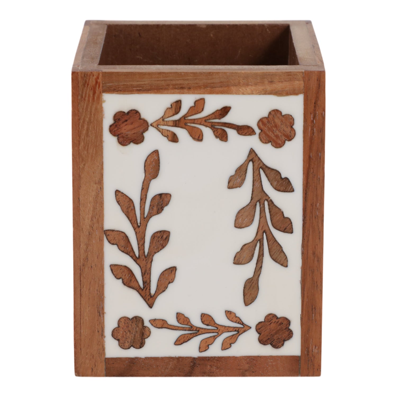 4x3" Wood Petals Resin Pencil Cup, Brown/white